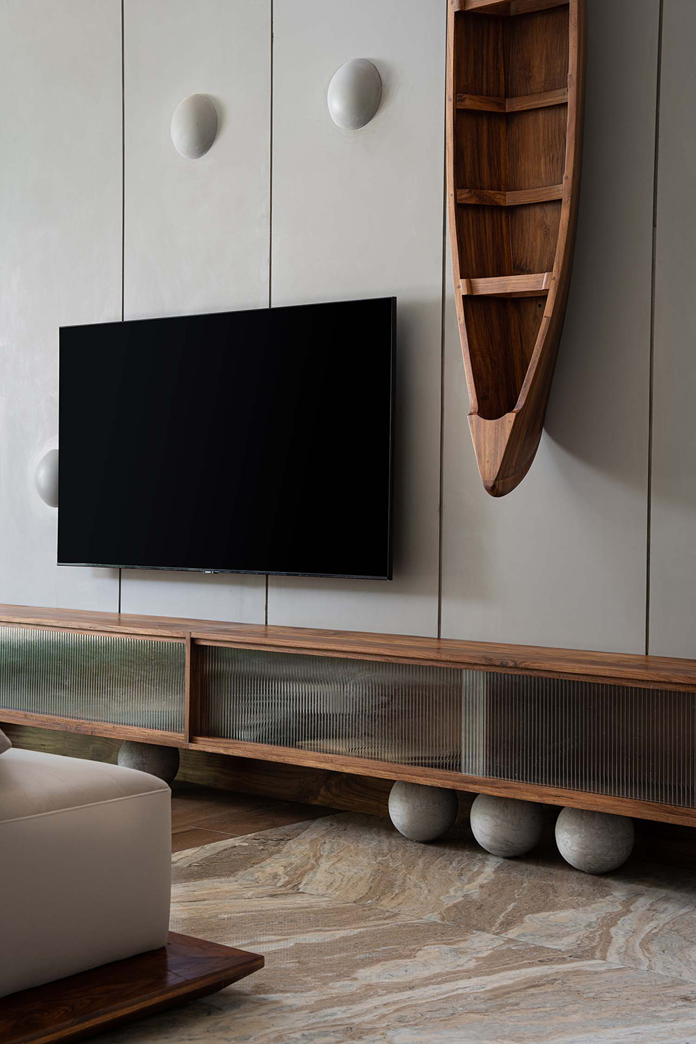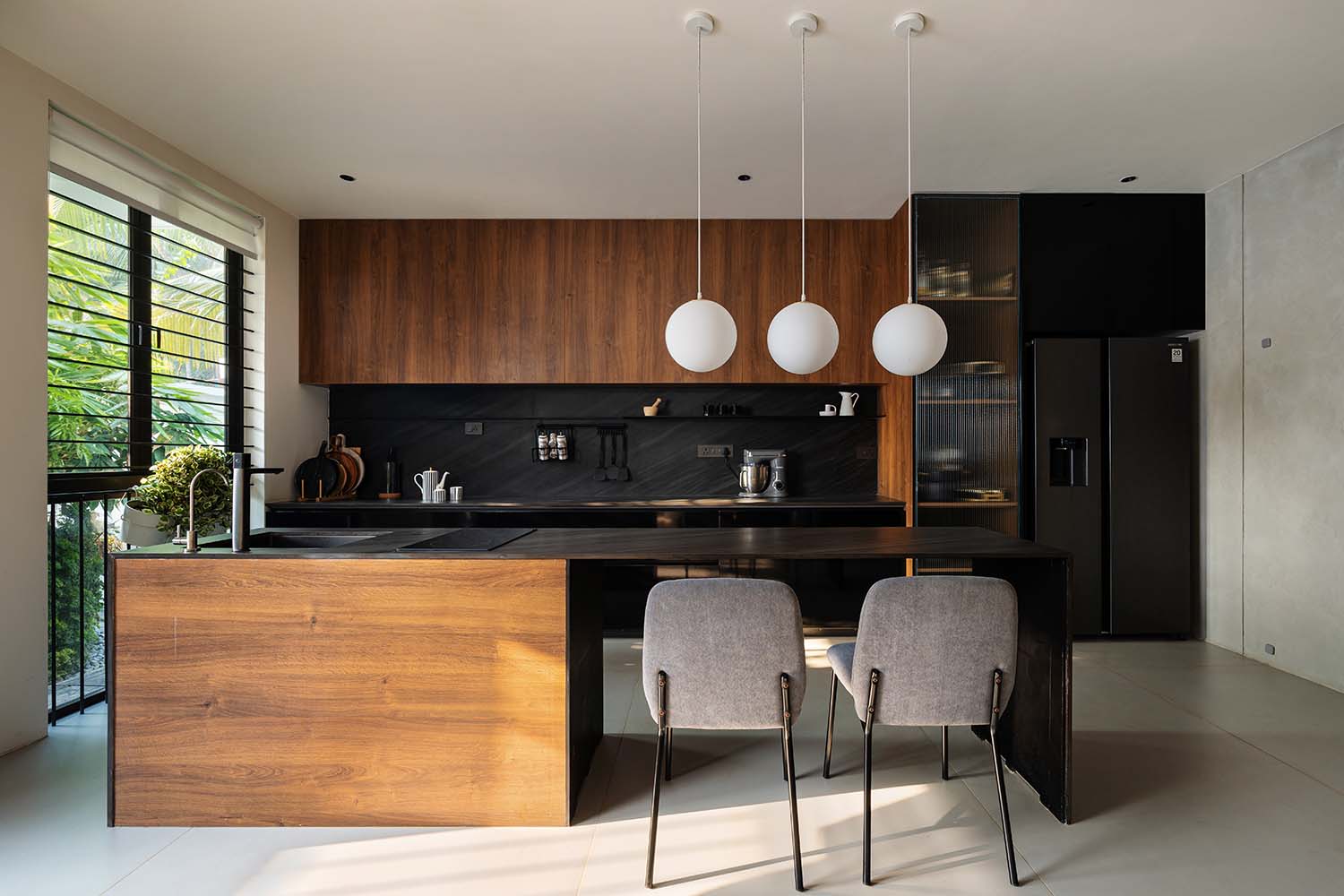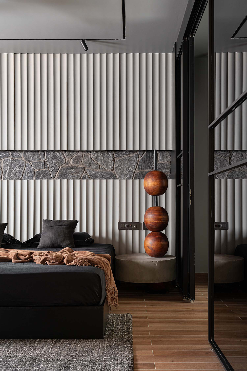 Tucked in Pulikkal, Malappuram, Kerala, this 3300 sq.ft remodeled home by 3dor Concepts is a seamless blend of modern geometry, handcrafted details, and minimalist design. Inspired by beads, the space uses repetition and curvature to create harmony. A striking black spiral staircase greets visitors, leading to re-polished marble floors, fluted cement walls, and warm wood accents. Custom furniture and artisanal pieces, like a boat sculpture, enhance the aesthetic. Natural light and shadows dance through the living room and koi pond patio. Sustainable choices, including retaining the original marble, ensure a transformation that feels both fresh and authentic. Area: 3300 sq.ft Year: 2024 Location: Malappuram